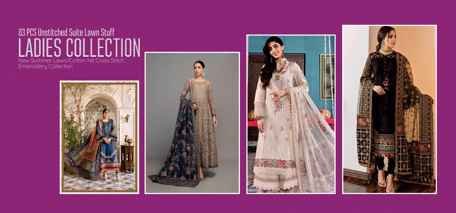 Shop our full Collection of Ladies Suits stitched & Fabrics.