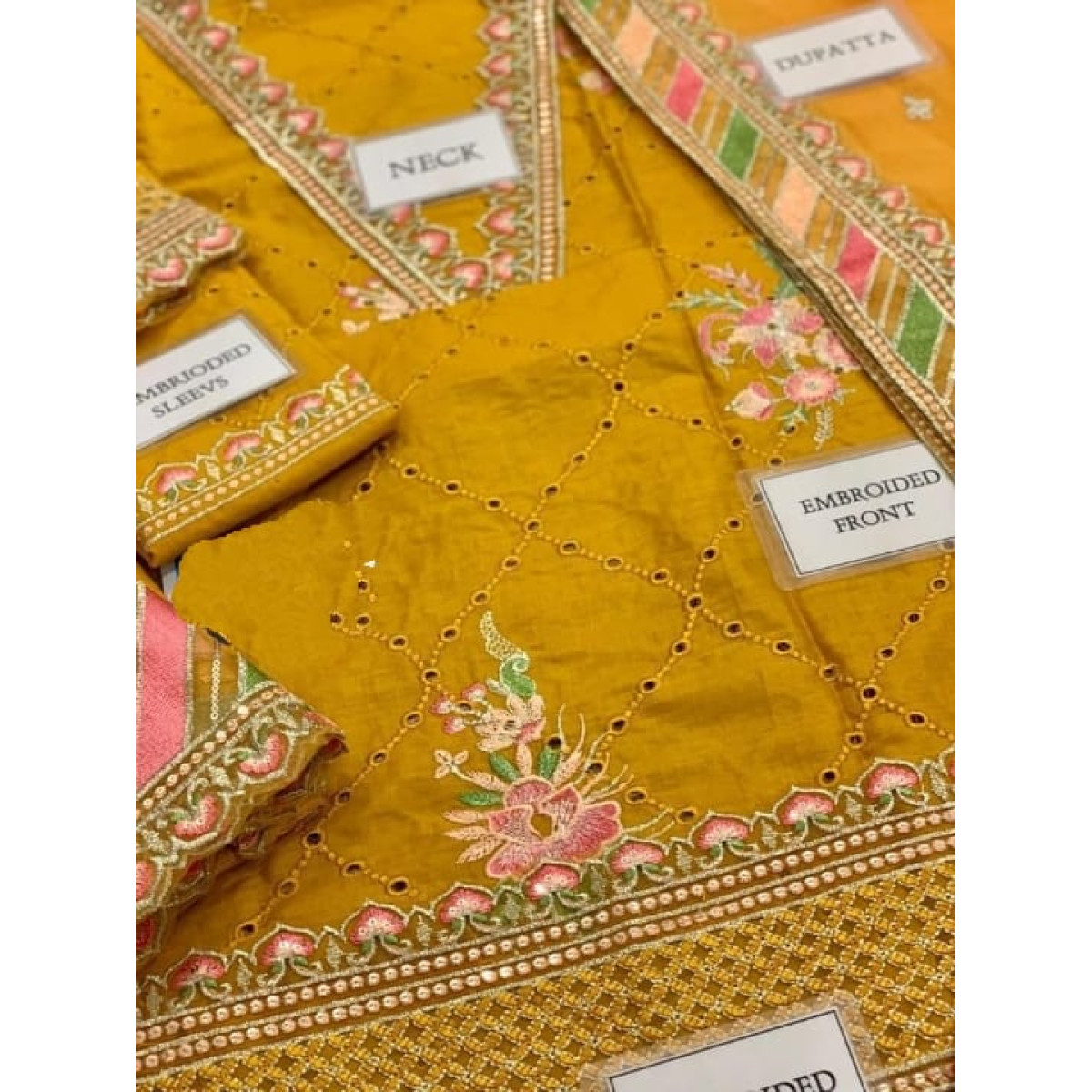 *Lawn Fully Heavy scuffle Embroidered Front with Fully Heavy Embroidered Neck with Fully Heavy Embroidered Boarder*