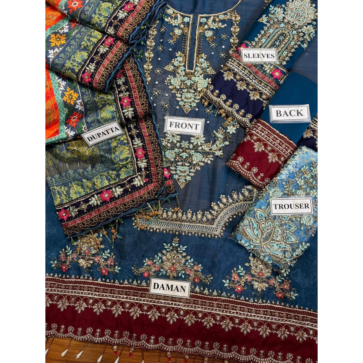 *Chiffon Heavy Embroidered Spangle work Sleeves with 2 type Heavy Embroidered Spangle work Sleeves Boarder with Heavy Fancy Tulles Attachment