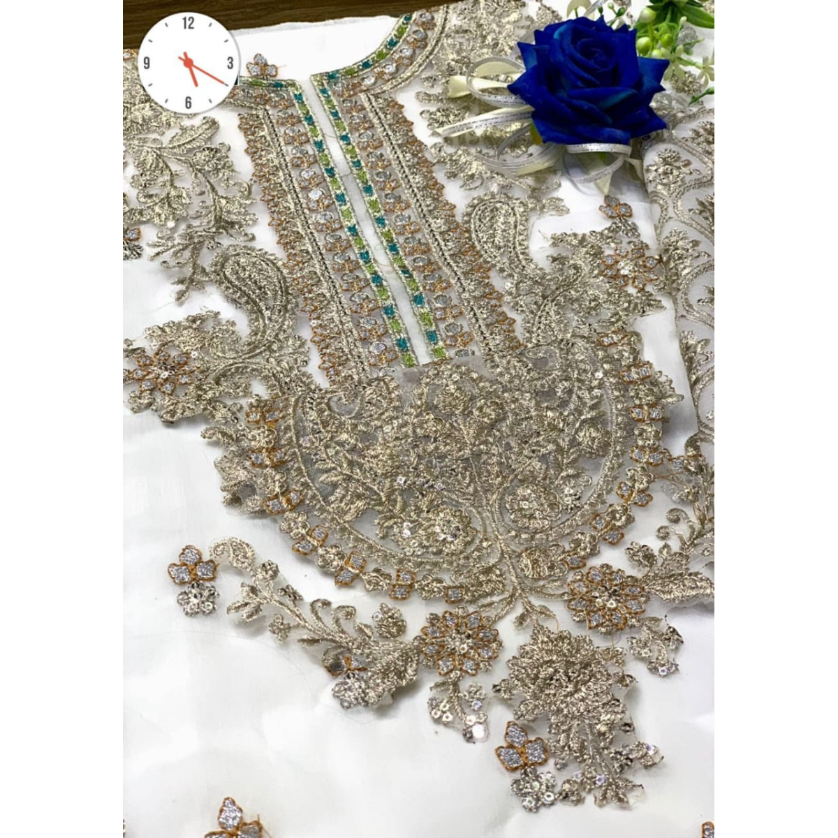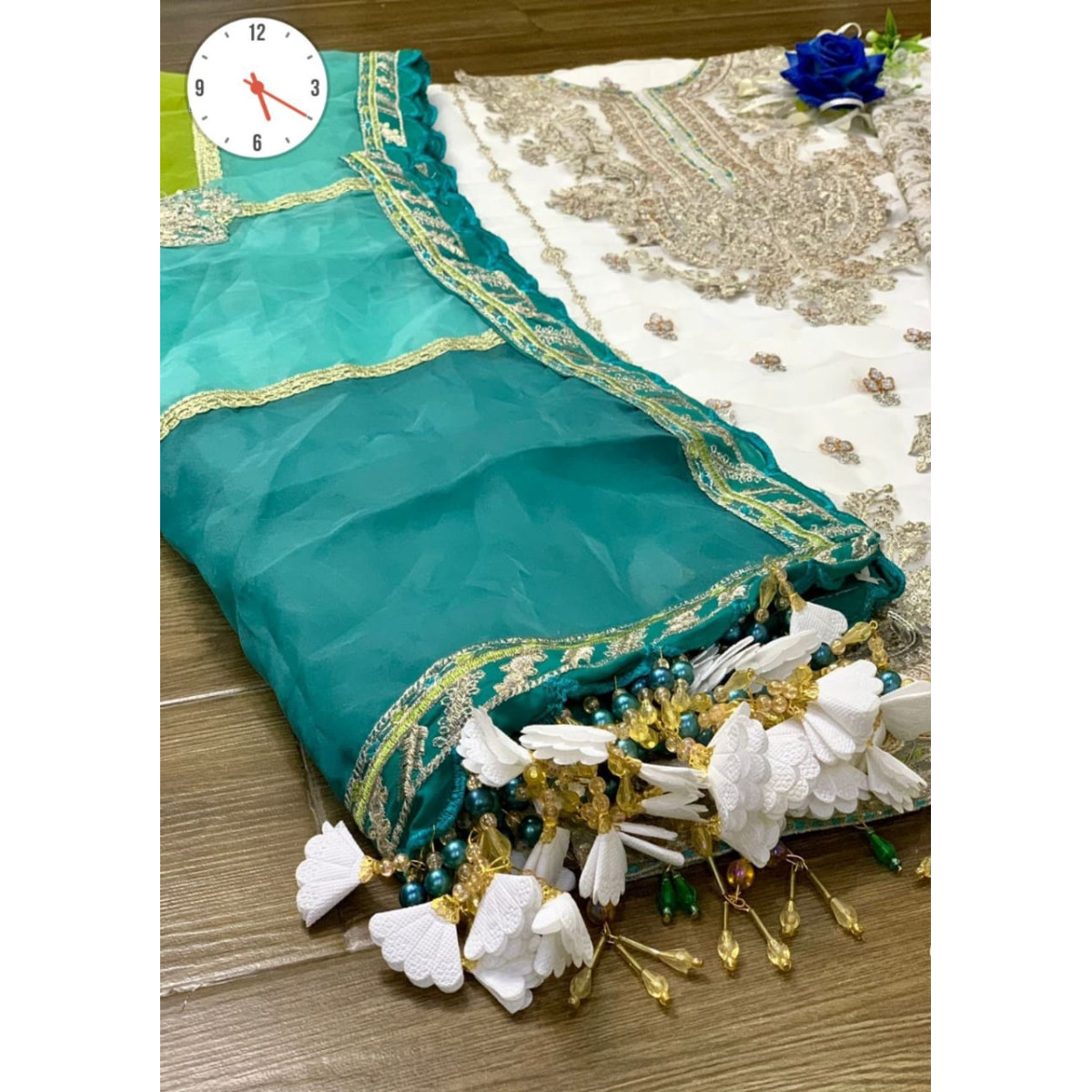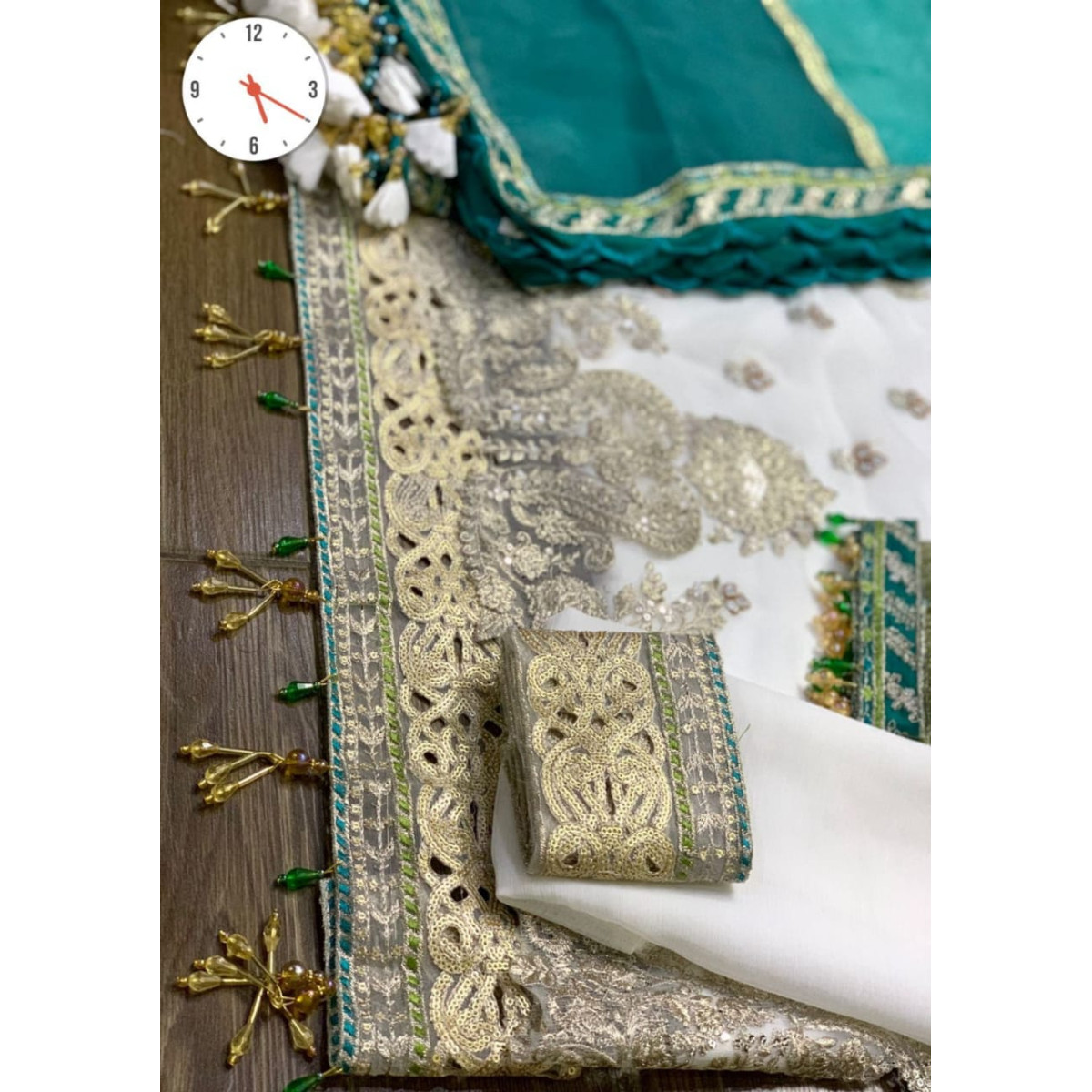 Bumber Chiffon Fully Heavy Embroidered Spengle Work Front with Fully Heavy Embroidered Spengle Work Daman Boarder with Cut Work with Fancy Tulses Stich