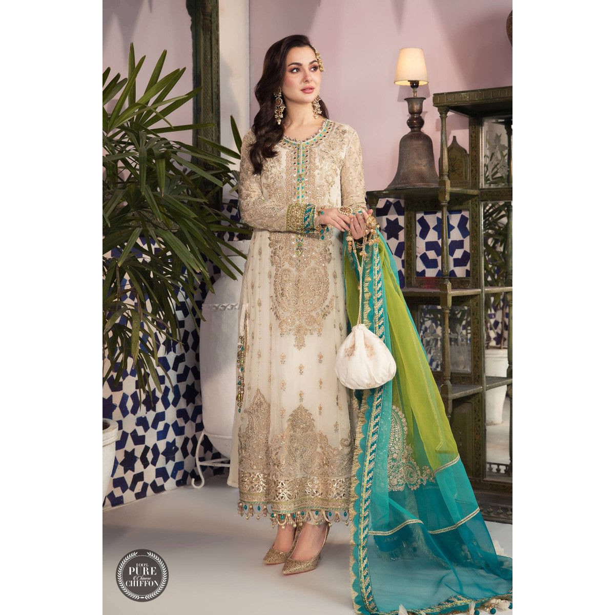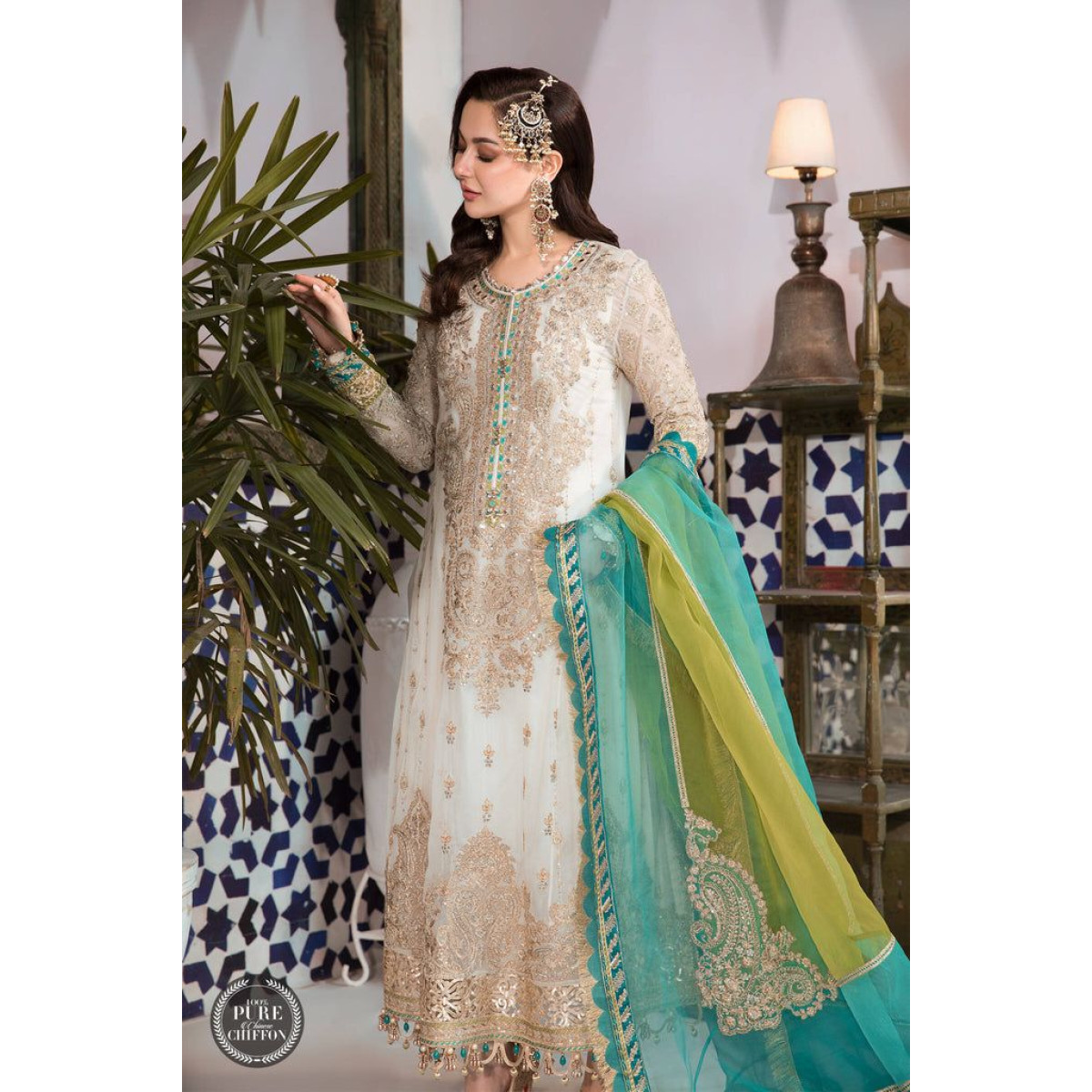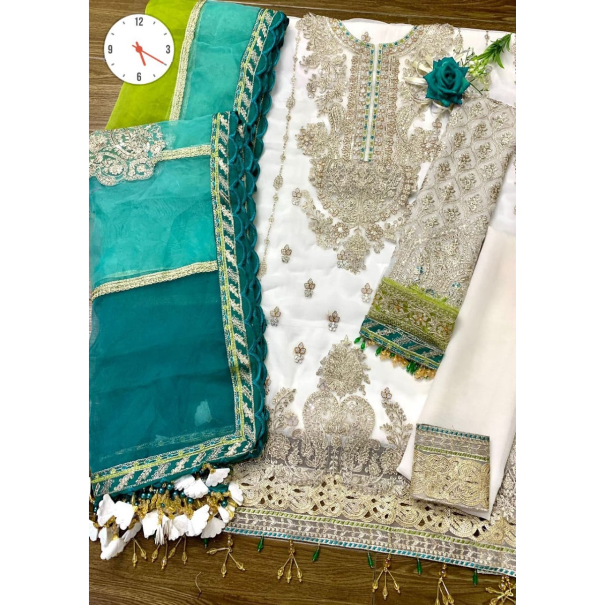 Bumber Chiffon Fully Heavy Embroidered Spengle Work Front with Fully Heavy Embroidered Spengle Work Daman Boarder with Cut Work with Fancy Tulses Stich