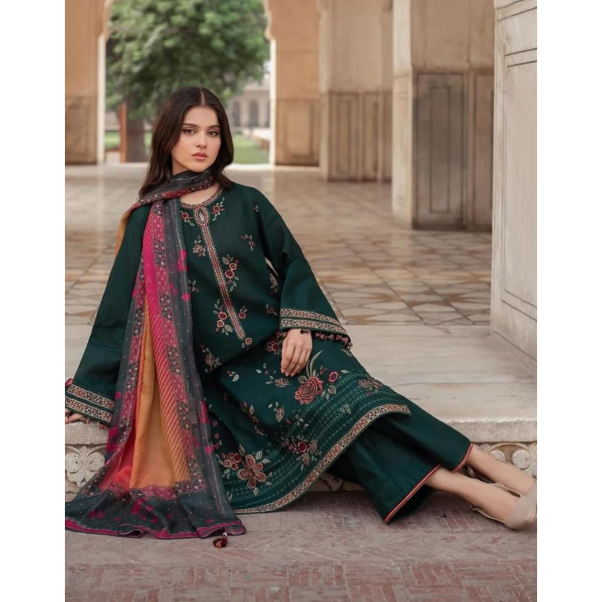 Digital Printed 3 PCs Suit with Monrak Dupatta