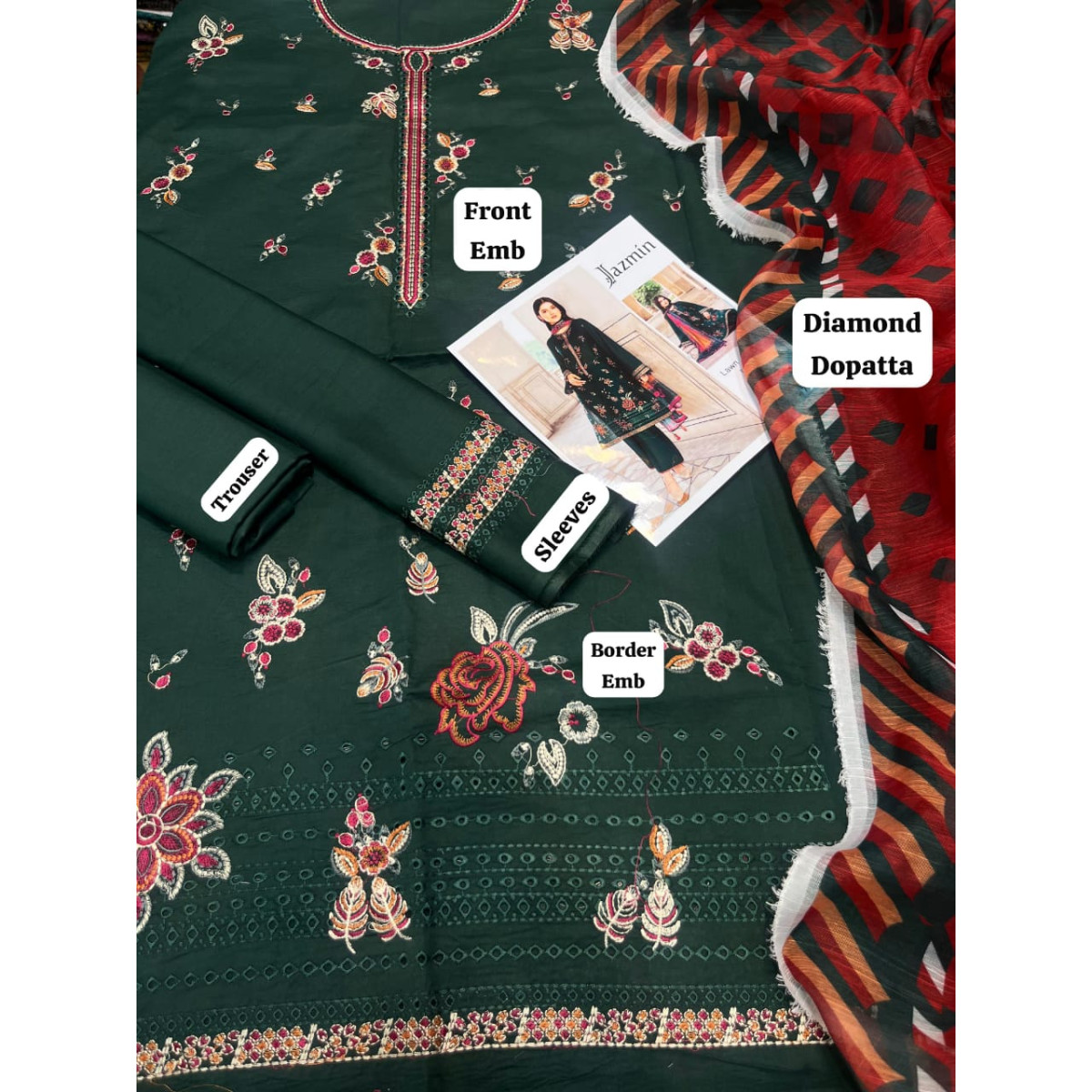 Luxury Collection Hit Code Available on Fine Quality Lawn with Mnarak Diamond Dopatta