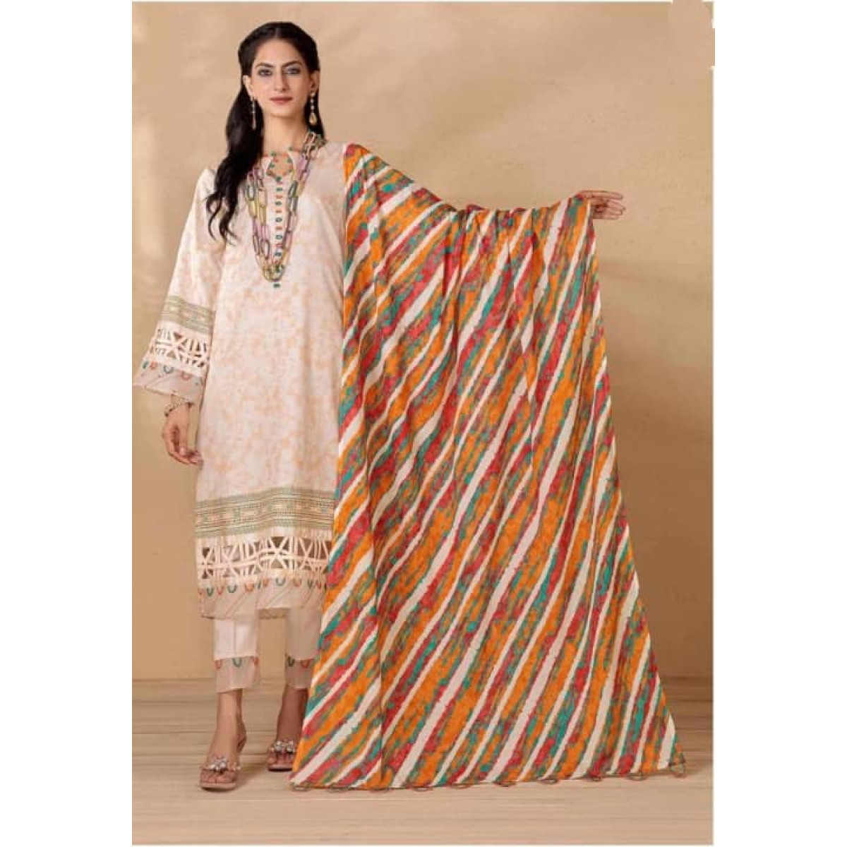 Digital Printed 3 PCs Suit with Corduroy Dupatta